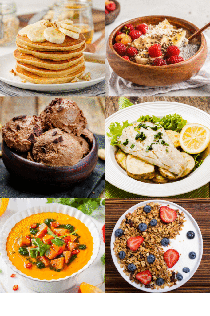 1,000+ opciones para desayuno, almuerzo y cena (incluye menús semanales).